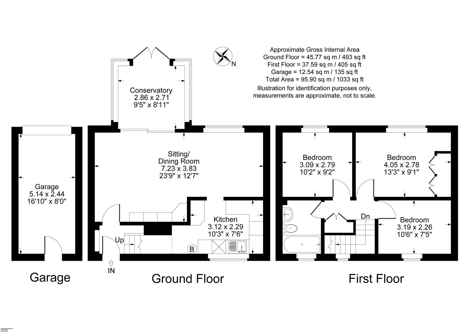 On the ground floor, the accommodation begins with an entrance hall leading into a sitting/dining room, ideal for family meals or relaxed evenings. Adjacent lies the kitchen, while a conservatory at the rear provides a bright, flexible space that brings the garden into the home. Upstairs, there are three bedrooms plus a family bathroom, offering a comfortable layout.