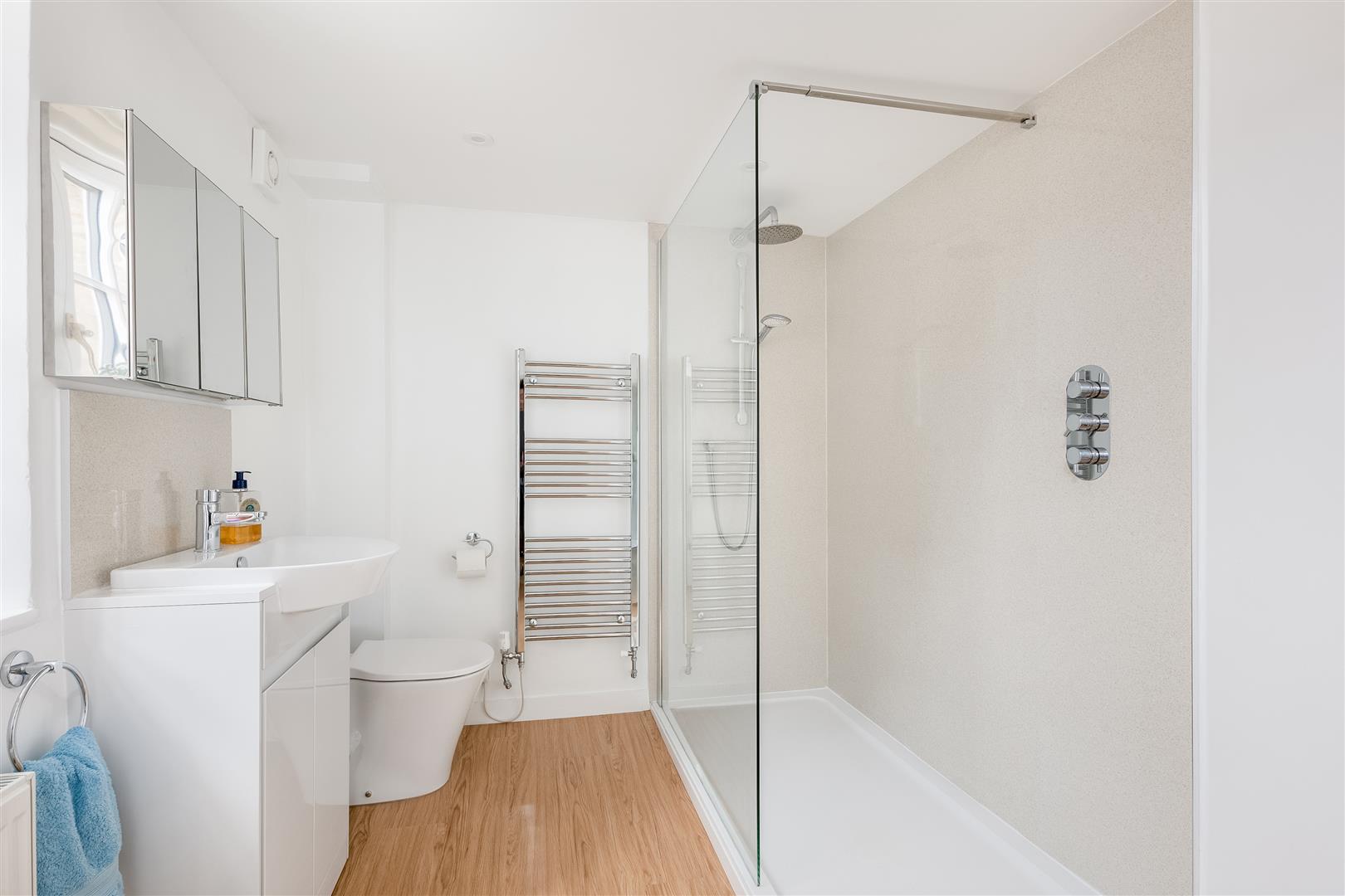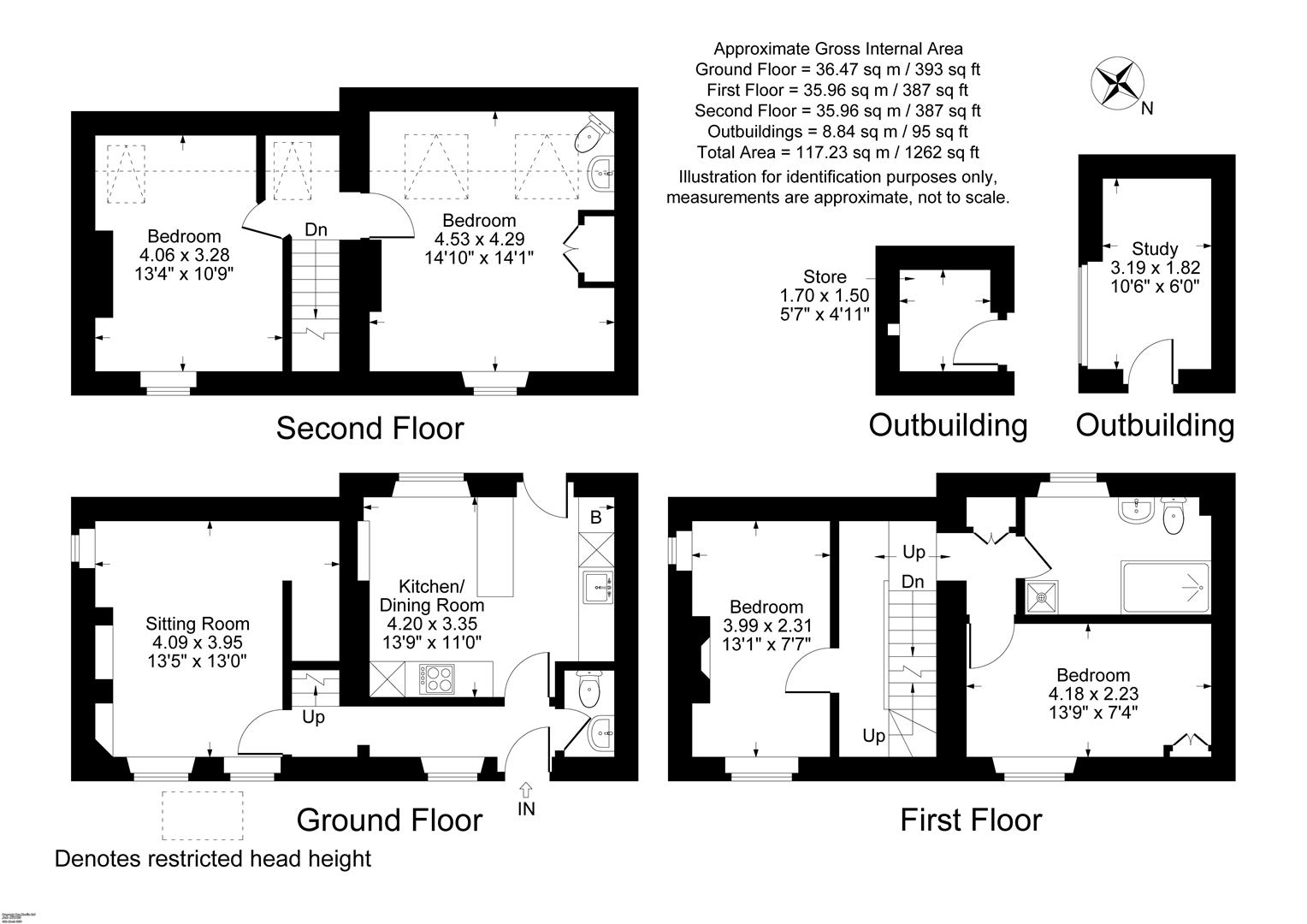 Stairs rise to the first floor where there are two bedrooms and a shower room. A further staircase leads to the second floor, where there are two additional bedrooms, one of which has a WC and sink.