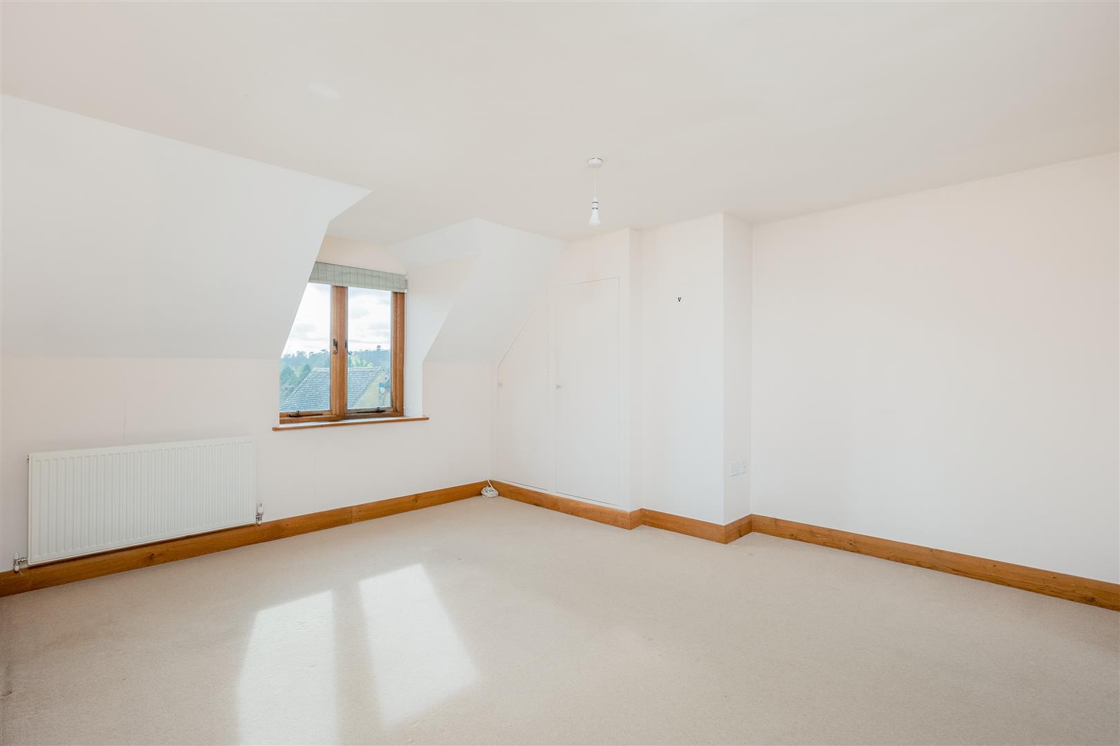 Upstairs, the first floor provides three large double bedrooms. The principal bedroom benefits from built-in wardrobes and an ensuite shower room, while the remaining bedrooms are served by a separate family bathroom. All three bedrooms enjoy attractive views towards Cornbury Park and the surrounding open countryside.