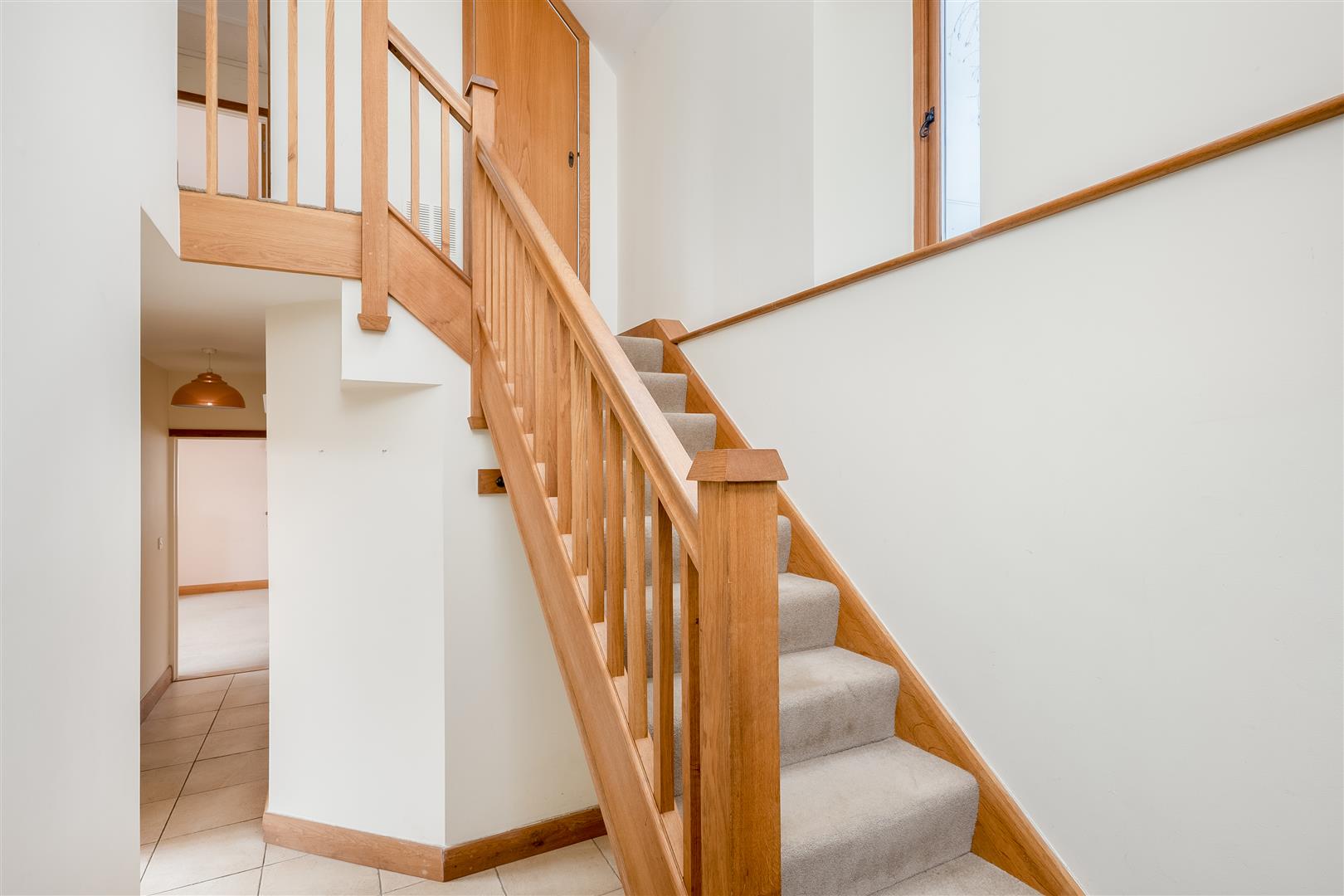 You enter the property from Priory Lane into a welcoming entrance hall with stairs rising to the first floor. A step down leads to an inner hallway with useful hanging space beneath the stairs and access to the utility room, which provides a sink and space for a washing machine. There is also a separate WC.